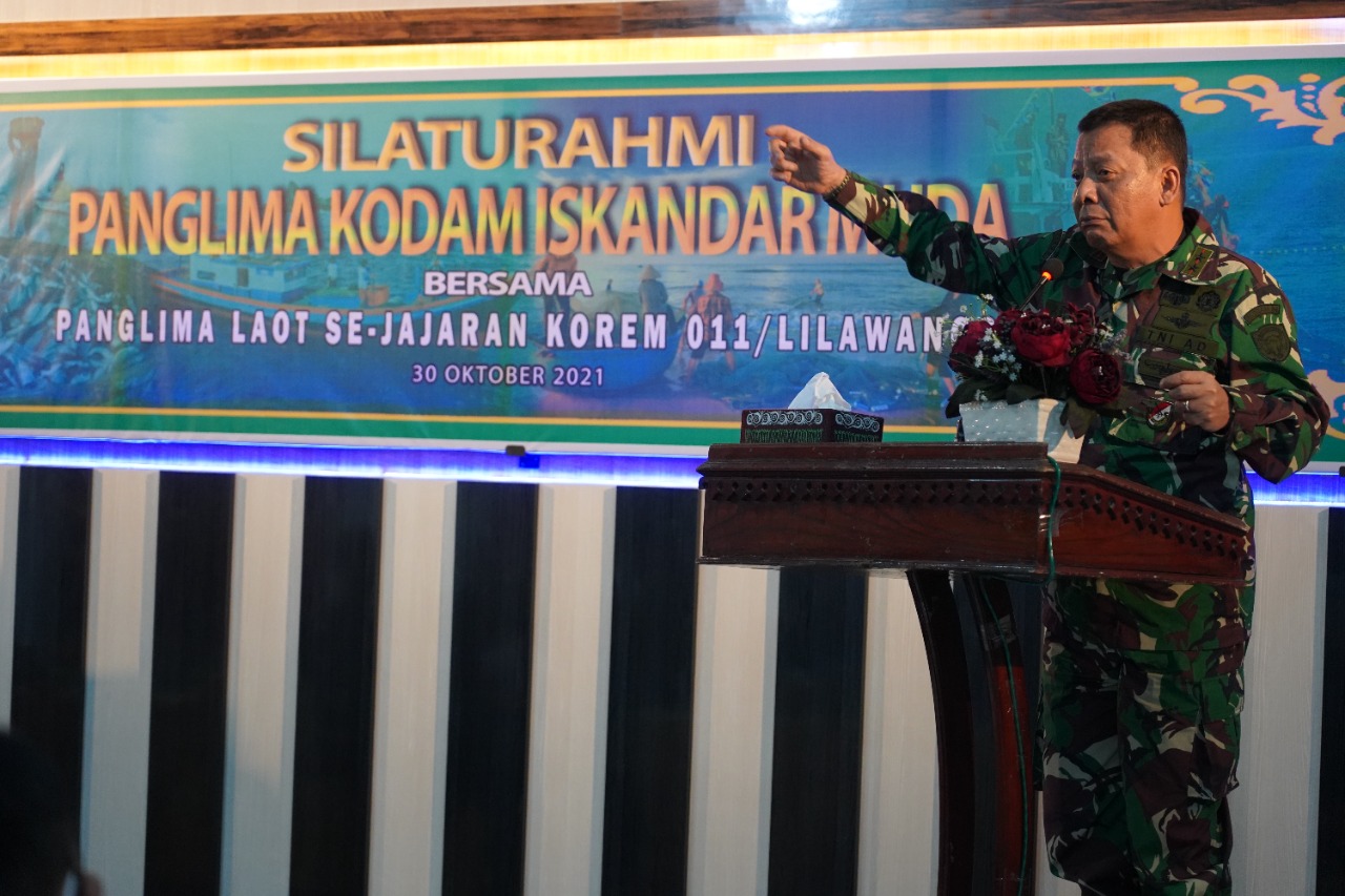 Dalam sambutannya, Pangdam mengatakan, bahwa kedatangannya ke Kabupaten Pidie untuk bersilaturahmi, dengan tujuan untuk mempererat tali silaturrahmi antara Prajurit TNI jajaran Kodam Iskandar Muda dengan Panglima Laot se-jajaran Korem 011/LW.