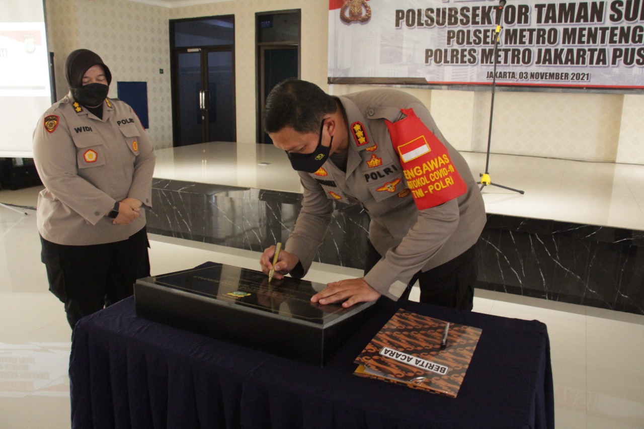 Jakarta, lingkar wilayah – Kapolres Metro Jakarta Pusat Kombes Pol Hengki Haryadi meresmikan Polsubsektor Taman Suropati setelah dilaksanakan renovasi. Acara peresmian dan penandatanganan dilaksanakan di Aula Lantai 6 Polres Metro Jakarta Pusat (03/11/21).