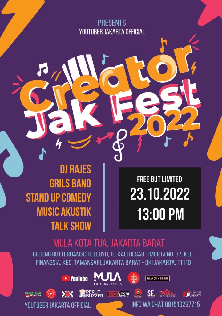 Lingkar Wilayah, Jakarta – YouTuber Jakarta Official atau yang disebut (YJO) sukses menyelenggarakan event perdananya yang bertajuk “Creator Jak Fest 2022”, pada hari Minggu, (23/10) dimula kota tua. Selain dari YJO, ada juga komunitas Izoc Kompi Zombie, Stand Up Indo Jakpus, dan beberapa komunitas lainnya.