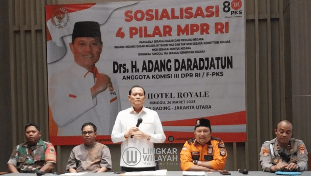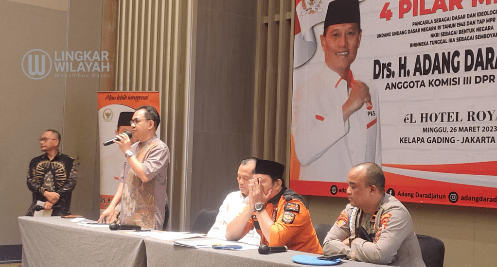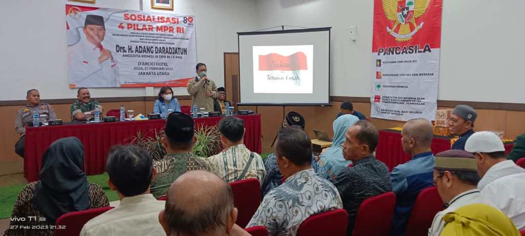 Anggota DPR RI Komisi 3, Adang Daradjatun menggelar acara sosialisaai 4 Pilar di Hotel El Royal, Kelapa Gading, Jakarta Utara, Minggu, 28/3/2023.