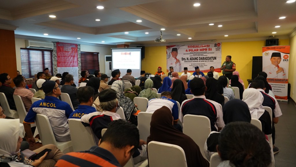 Selanjutnya, Drs.H. Adang Daradjatun, ketua fraksi Partai Keadilan Sejahtera (PKS) komisi III ini menyampaikan secara garis besar 4 Pilar, Pancasila, UUD 1945, Bhinneka Tunggal Ika dan NKRI.