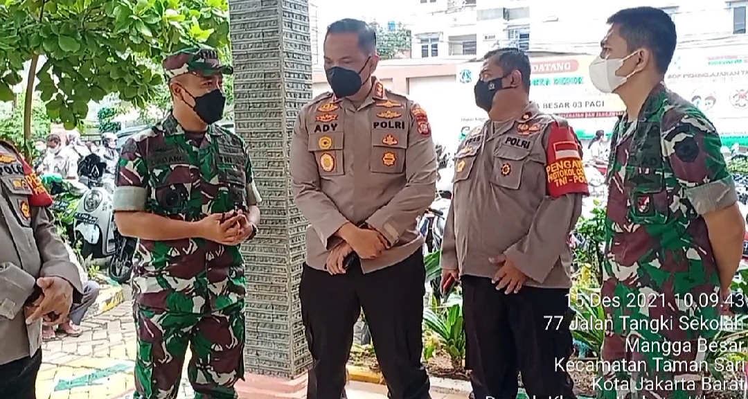 Jakarta Barat, Lingkar Wilayah – Dandim 0503/Jakarta Barat, Kolonel Inf Dadang Ismail Marzuki bersama Kapolres Metro Jakarta Barat, Kombes Pol Ady Wibowo pantau pelaksanaan vaksin Anak usia 6-11 tahun di wilayah Tamansari Jakarta Barat. Rabu (15/12/2021)