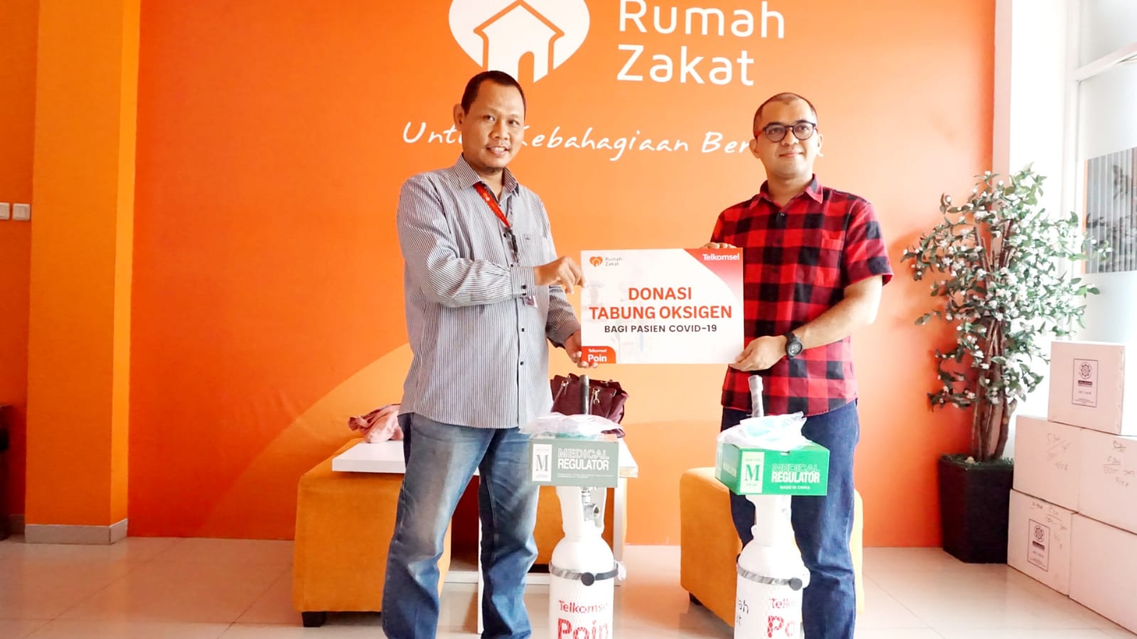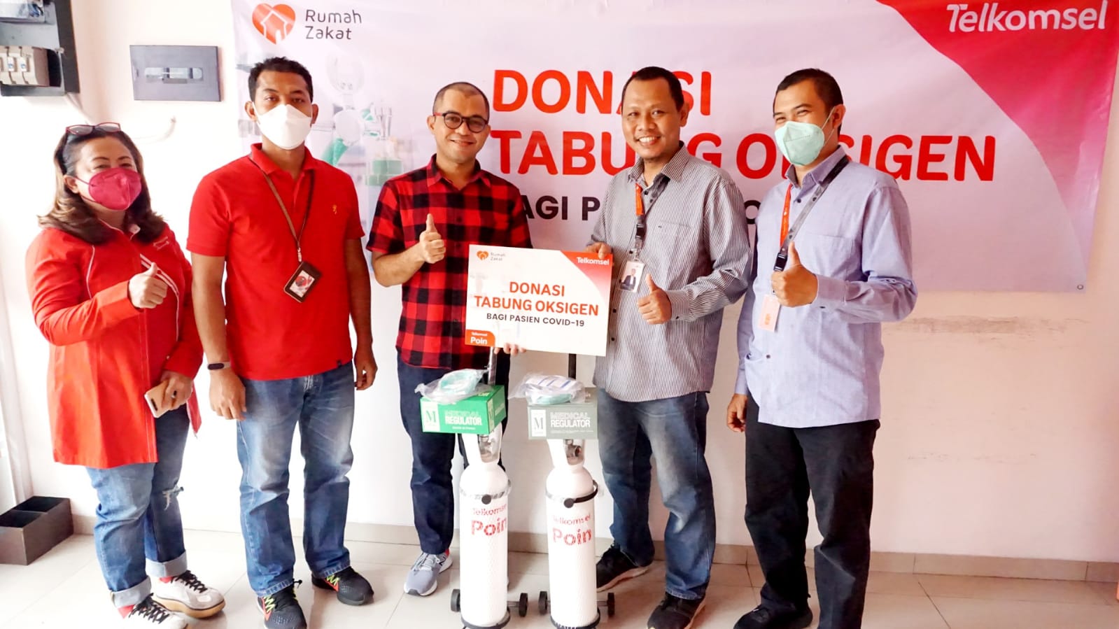 Lingkar Wilayah, Jakarta – Telkomsel menyerahkan donasi dari Telkomsel Poin kepada Rumah Zakat untuk disalurkan dalam bentuk tabung oksigen kepada yang membutuhkan, pada Rabu (22/9/2021). Acara tersebut diselenggarakan di kantor Rumah Zakat Palmerah yang dihadiri langsung oleh Jaelani selaku pimpinan Rumah Zakat Jakarta Raya dan Purnama Adhiputra Manager Campaign & Customer Retention Management Jabotabek Jabar.