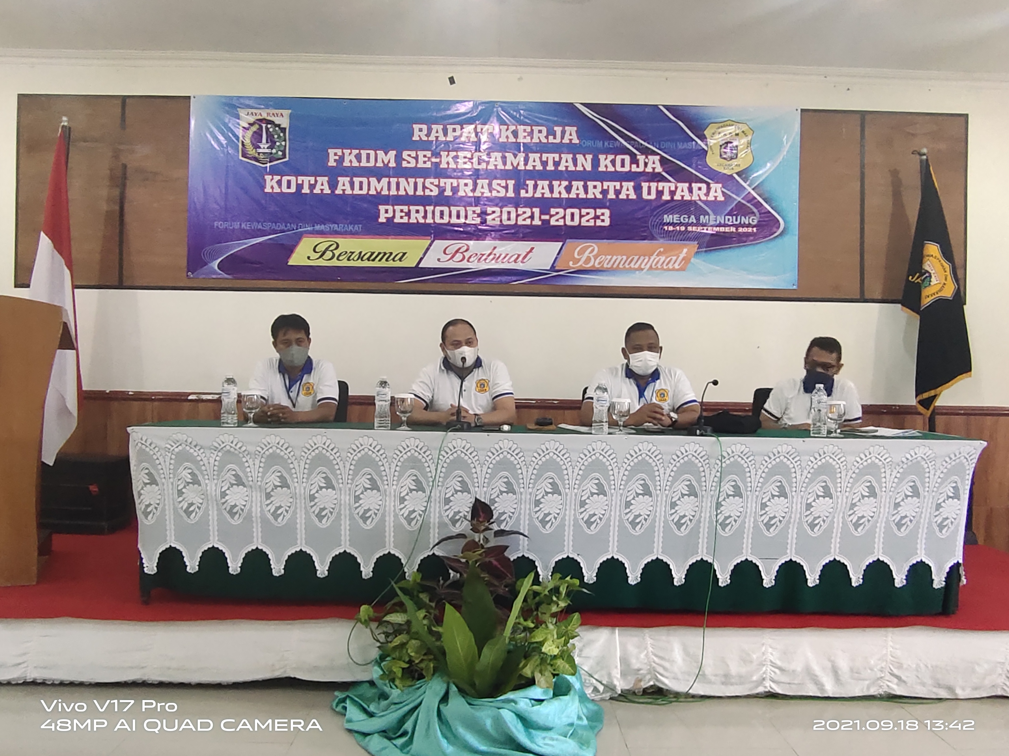 Lingkar Wilayah, Bogor – Dalam rangka pelaksanaan kegiatan Penataan Kelembagaan Forum Kewaspadaan Dini Masyarakat (FKDM) Se-Kecamatan Koja Kota Administrasi Jakarta Utara tahun 2021, maka digelar Rapat Kerja pada hari Sabtu, 18-19 September 2021 di Aula Hotel Mega Mendung Bogor Jawa Barat. Rapat kerja kali dihadiri oleh Camat Koja Ade Himawan, Baznas Nur Alam Bachtir Wakil Ketua Bidang Pengelolaan, Pendistribusian dan Pendayagunaan Zakat Provinsi DKI Jakarta dan Perwakilan Para Lurah Se-Kecamatan Koja Kota Administrasi Jakarta Utara.