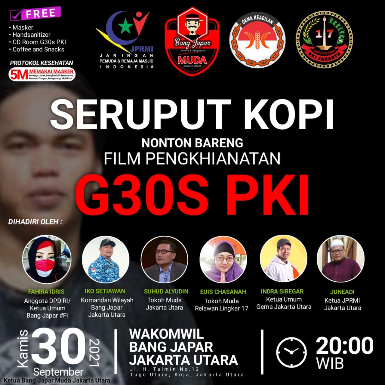 Nobar ini, lanjutnya, berkolaborasi dengan pemuda Jakarta Utara yang mana bertujuan agar para pemuda atau generasi muda tidak melupakan sejarah khususnya kekejaman Gerakan 30 September Partai Komunis indonesia (G30S PKI).