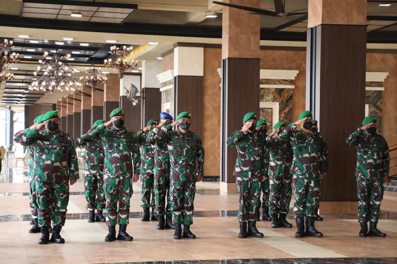 Jakarta, Lingkar Wilayah – Kepala Staf Angkatan Darat (Kasad) Jenderal TNI Andika Perkasa memimpin Serah Terima Jabatan (Sertijab) Asisten Logistik (Aslog) Kasad dari Mayjen TNI Jani Iswanto kepada Brigjen TNI Saiful Rachiman, di Lobi Gedung E Markas Besar Angkatan Darat (Mabesad), Jakarta, Rabu (12/10/2021).