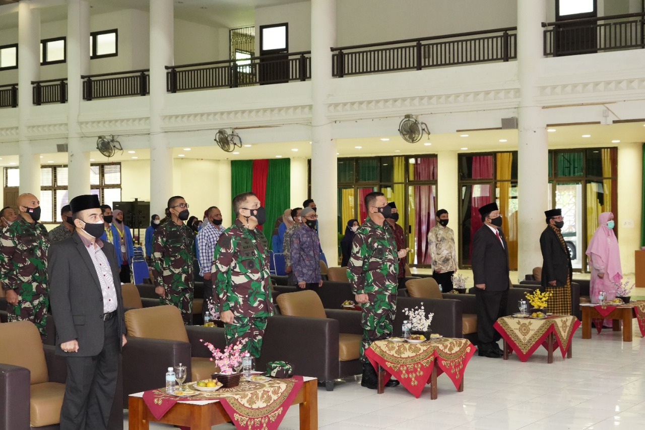 Rektor juga menyampaikan permohonan untuk terus melakukan kerja sama dalam rangka memupuk nasionalisme generasi milenial di tengah era globalisasi, di era 4.0. mahasiswa sebagai generasi penerus bangsa, sebagai intelektual muda memiliki peran penting dalam kehidupan berbangsa dan bernegara, harus mempu mengimplementasikan nilai-nilai pancasila membentuk karakter bangsa yang memiliki rasa nasionalisme yang tinggi yang dilandasi Hubbul Wathan Minal Iman.