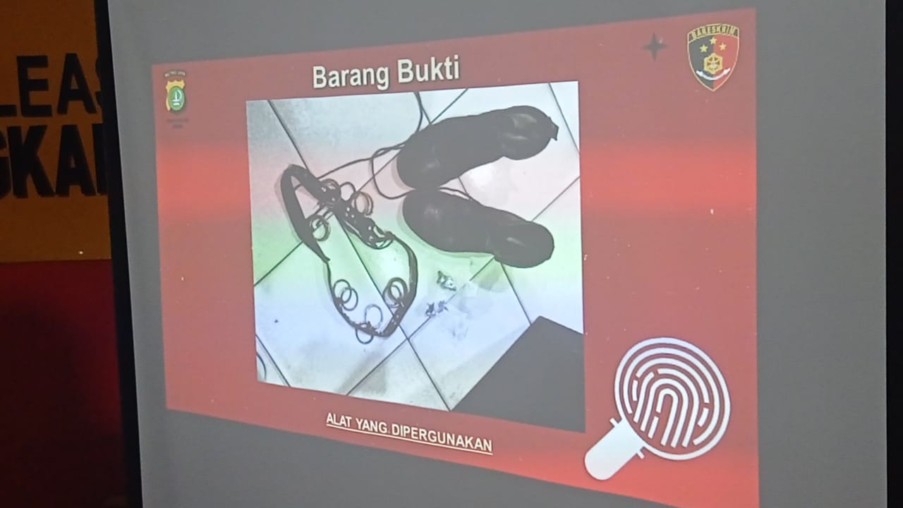 ” Ini pakaian dari korban yang mengapung di kali, ada sepatu dan sabuk yang digunakan oleh para tersangka untuk melukai korban dan bentuk cincin bergambar devil (setan) ” kata bintang